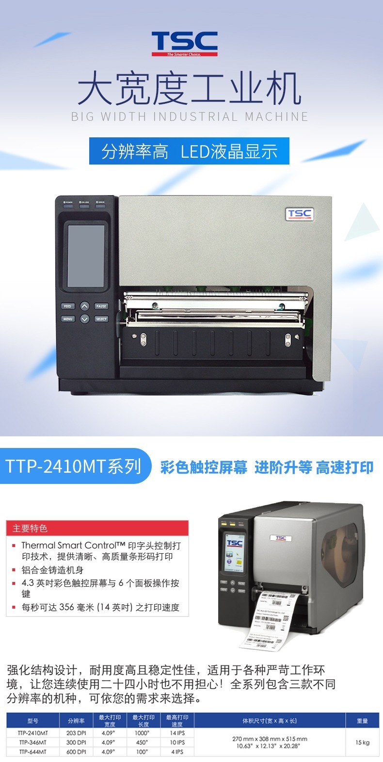 TSC有30多個(gè)系列,近百個(gè)機(jī)型的專業(yè)條形碼打印產(chǎn)品,種類涉及桌面型、工業(yè)型、便攜型、列印模組以及彩色打印,是目前所有品牌中產(chǎn)品較為齊全的制造廠商,可滿足各種行業(yè)的使用需求。